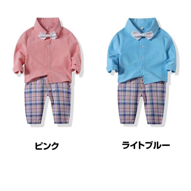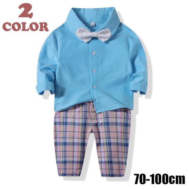 セットアップ 上下セット 2点セット トップス シャツ 長袖 ボトムス 長ズボン パンツ チェック柄 子供服 こども用 ベビー キッズ 男の子 男児