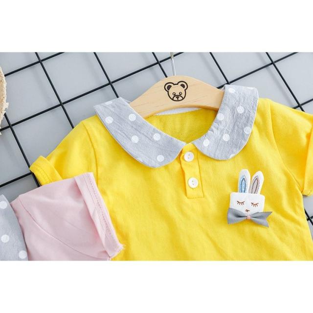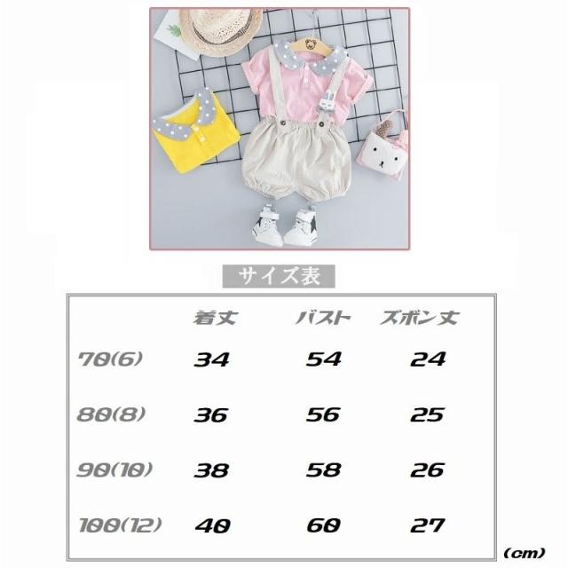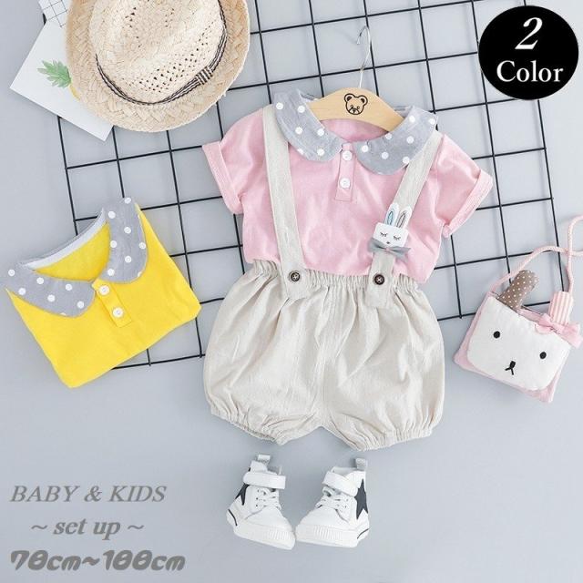 セットアップ ベビー キッズ ポロシャツ ラウンドネック 半袖 ショートパンツ 短パン 肩ストラップ ドット 70cm 80cm 90cm 100cm