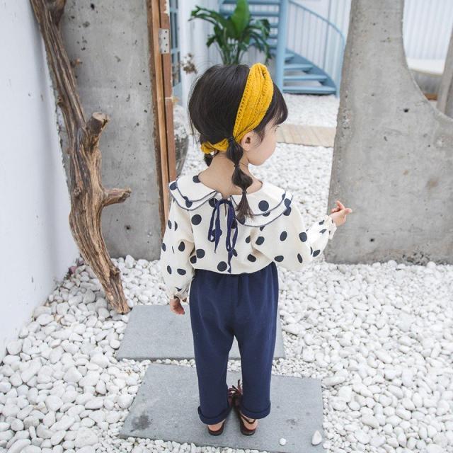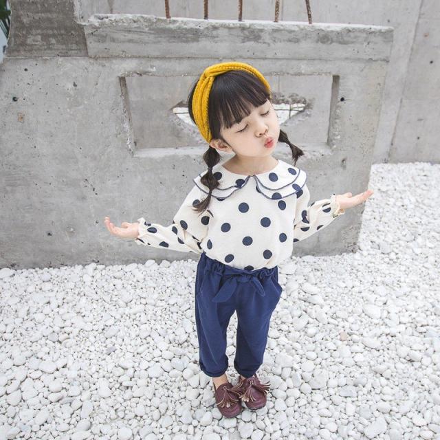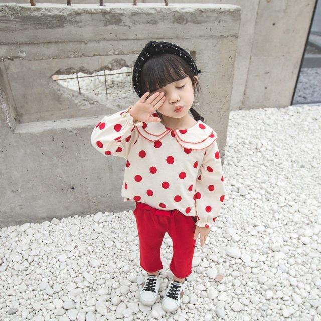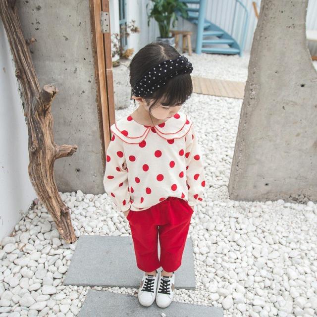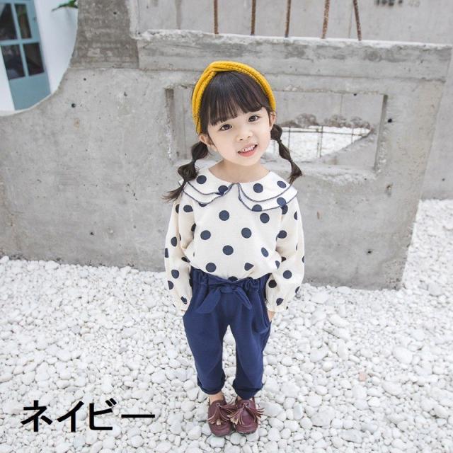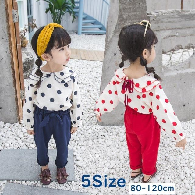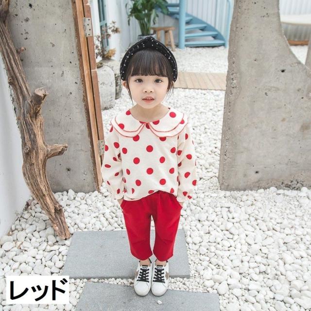 セットアップ キッズ 女の子 子供用 ブラウス 長袖 長ズボン 水玉 2点セット 上下セット 丸襟 かわいい レッド ネイビー