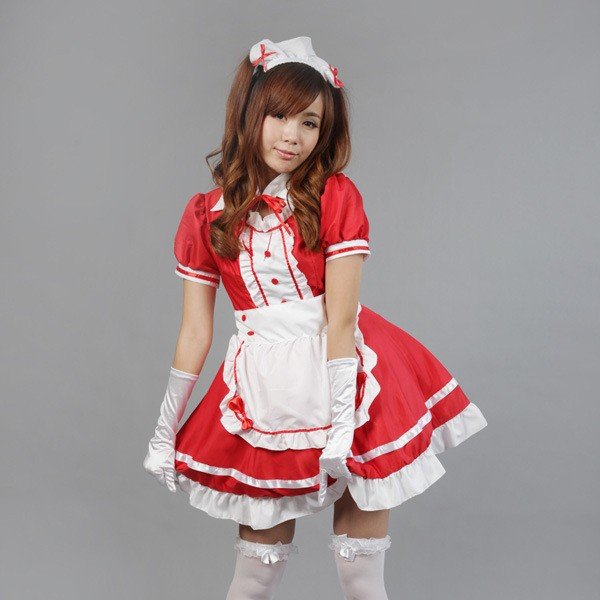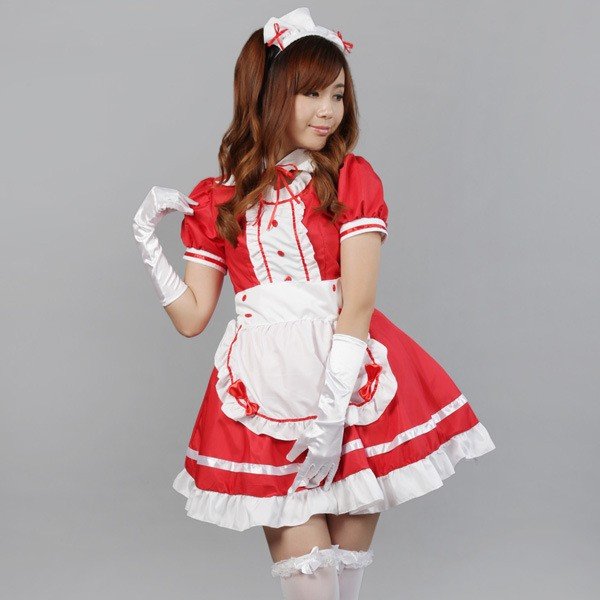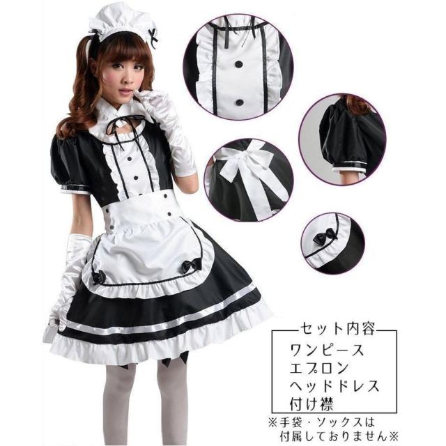 メイド服 4点セット ゴスロリ 半袖 ミニ丈 ショート丈 ヘッドドレス エプロン 付け襟 コスチューム コスプレ レディース ゴシックロリータ 衣装