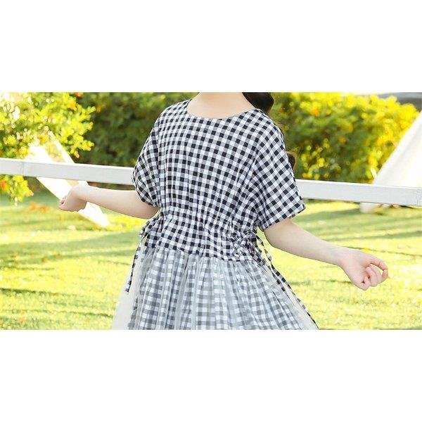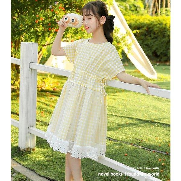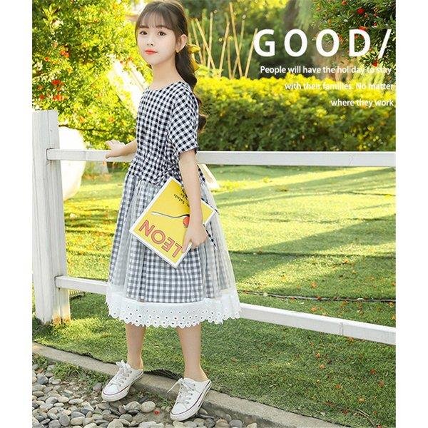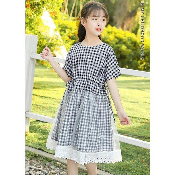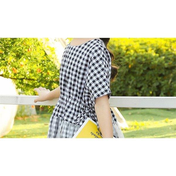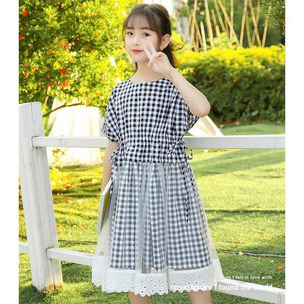 ワンピース キッズ 子供服 女の子 夏 キッズワンピース 半袖ワンピース チェック柄 チュール 子供ドレス ジュニア 子ども お姫様 おしゃれ 可愛い カジュアル
