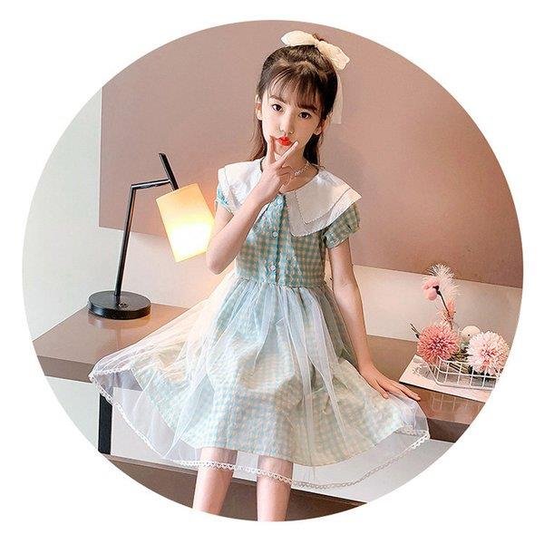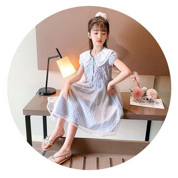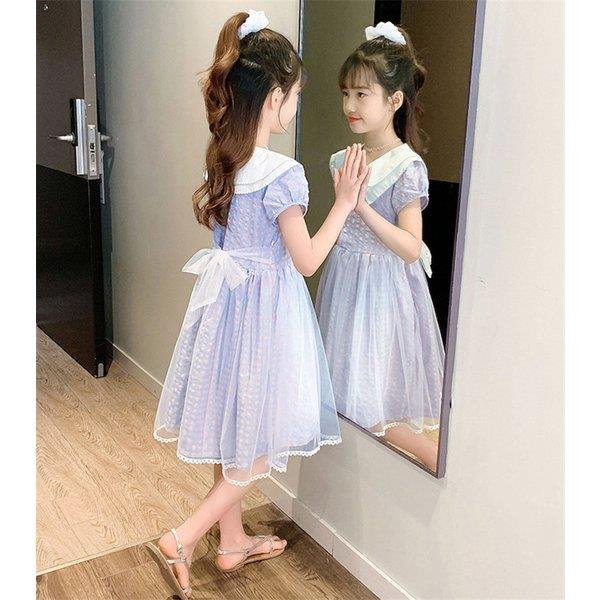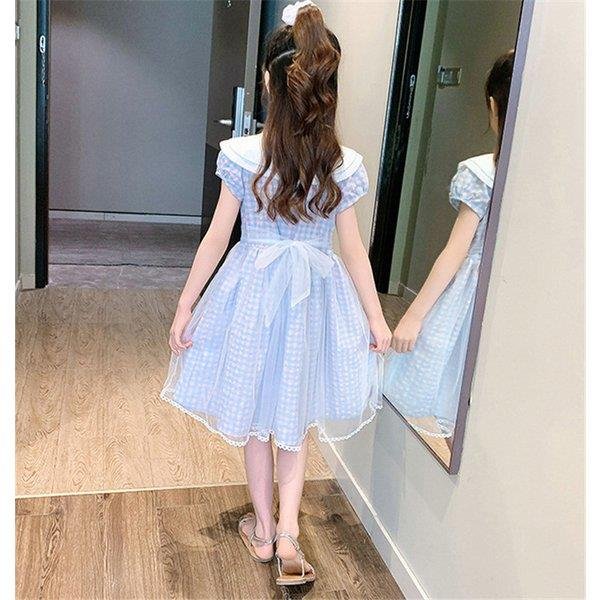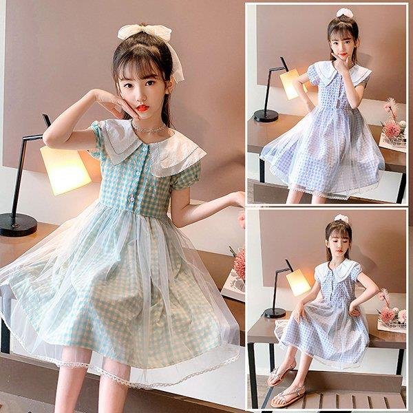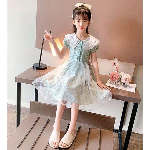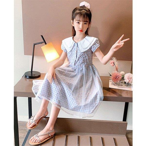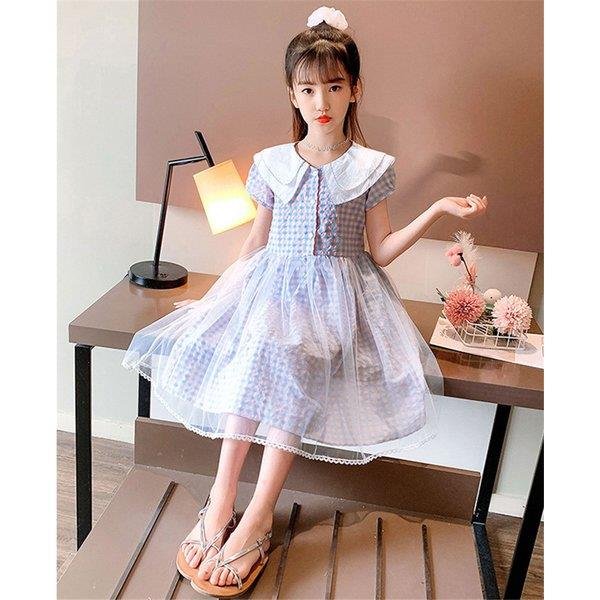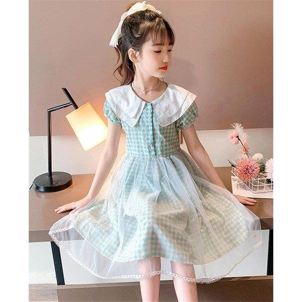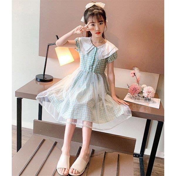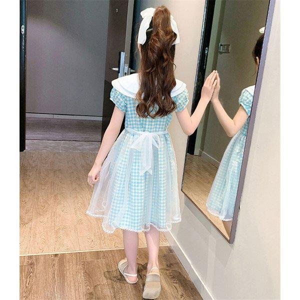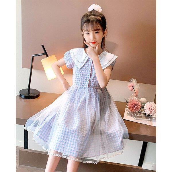 ワンピース キッズ 子供服 女の子 夏 キッズワンピース 半袖 チェック柄 チュール 折り襟 子供ドレス ジュニア 子ども お姫様 おしゃれ 可愛い カジュアル 新作