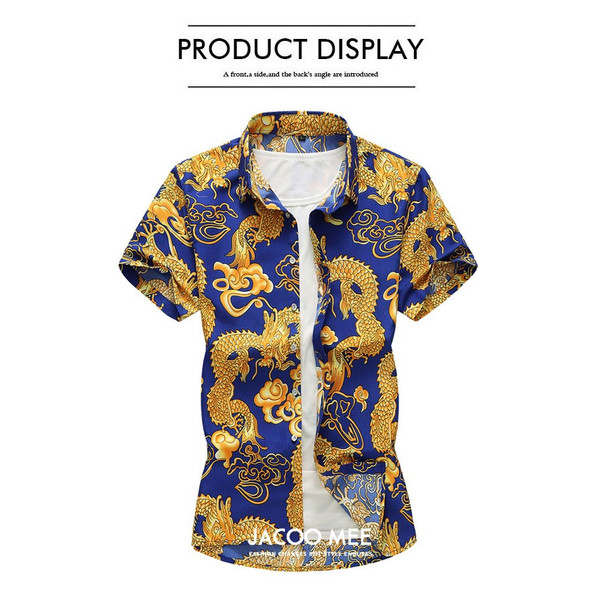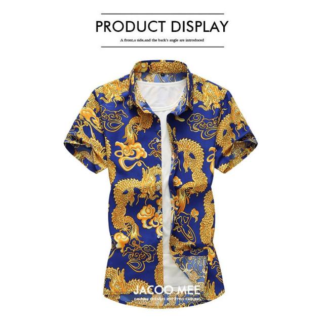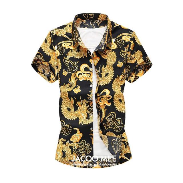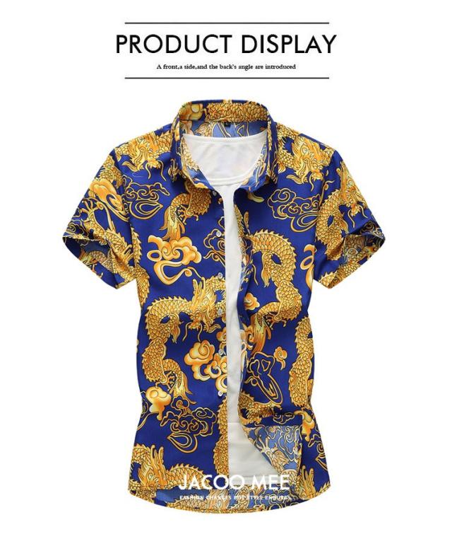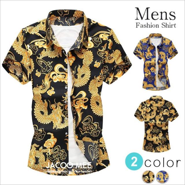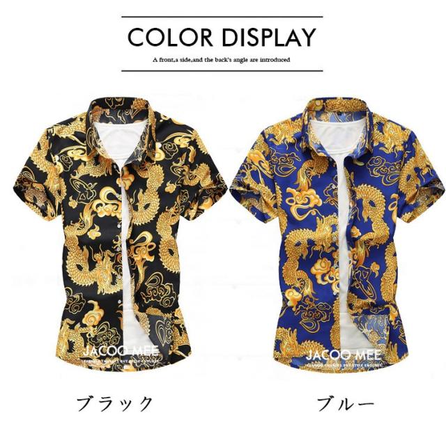半袖 アロハシャツ メンズ シャツ カジュアルシャツ 開襟シャツ トップス ハワイシャツ ビーチシャツ 龍柄 夏シャツ 涼しい 大きいサイズ