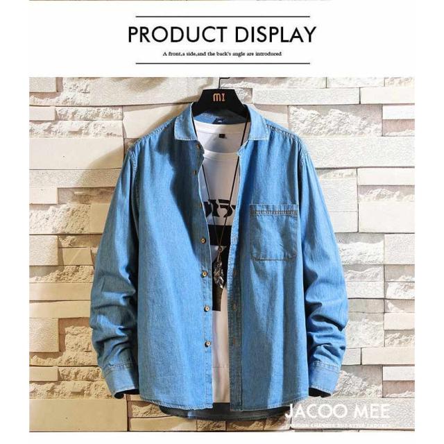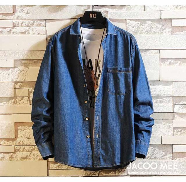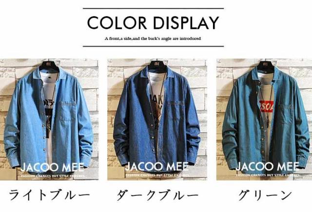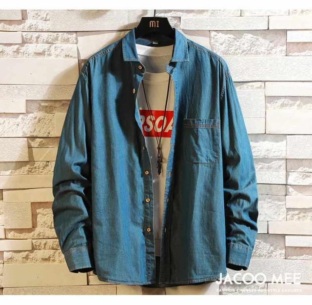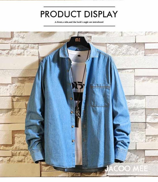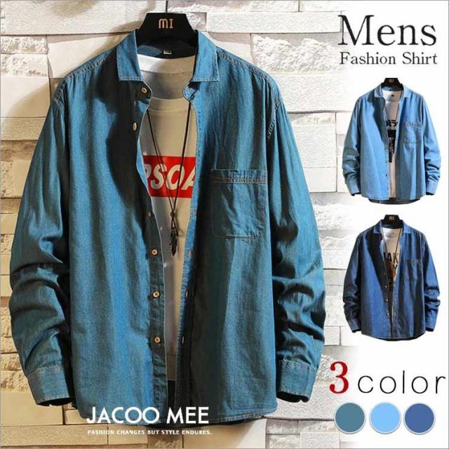 シャツ メンズ 長袖シャツ デニム カジュアルシャツ メンズシャツ シャツ 開襟シャツ ブルーデニム 長袖 ワークシャツ トップス 春 秋