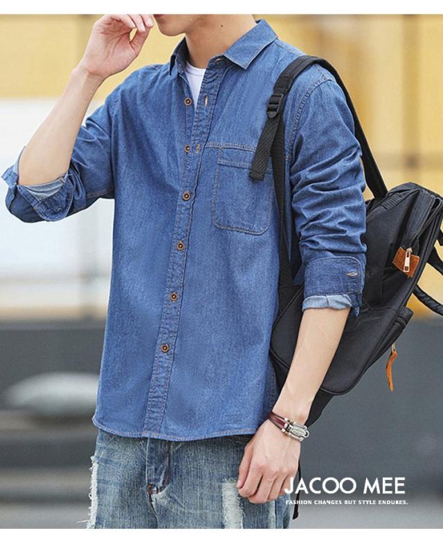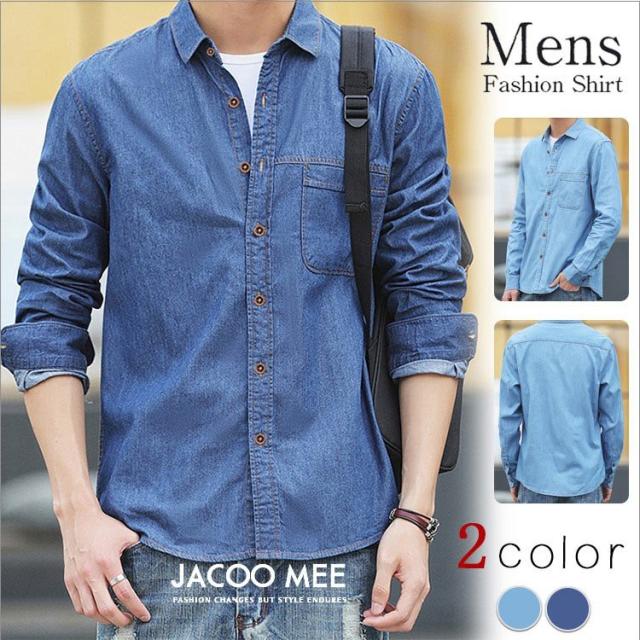カジュアルシャツ デニムシャツ メンズ 長袖シャツ ビジネスシャツ 無地 通勤 ボタンダウンシャツ ワークシャツ 開襟シャツ 春 秋