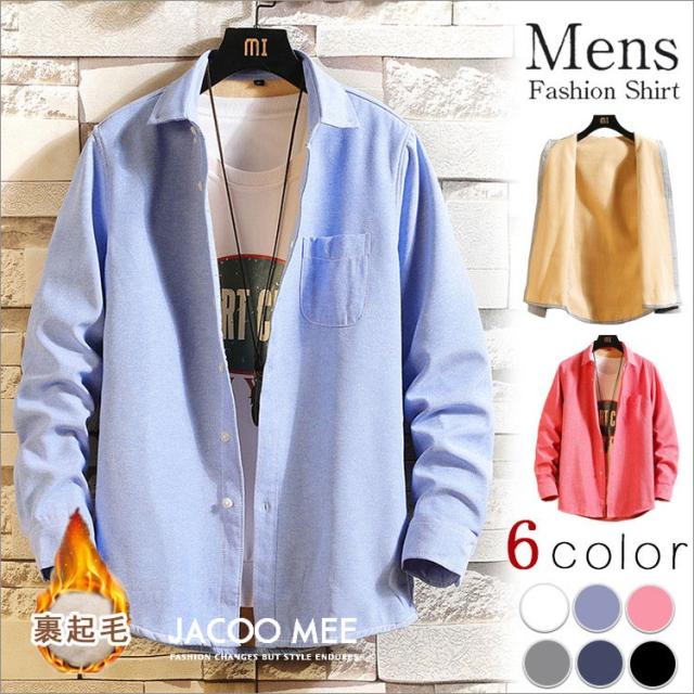 カジュアルシャツ メンズ シャツ 長袖 シャツ 裏起毛 ボタンダウンシャツ ビジネスシャツ 通勤 通学 無地 厚手 シャツ 冬 新作