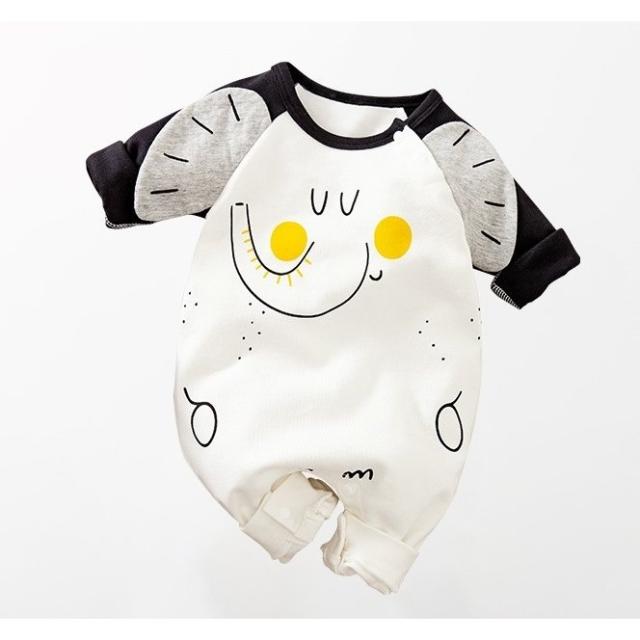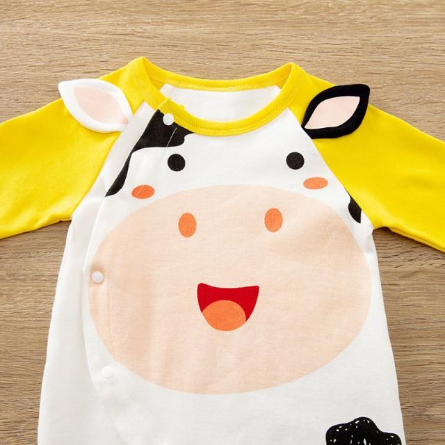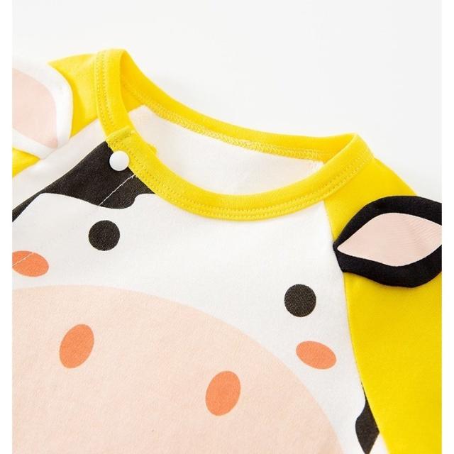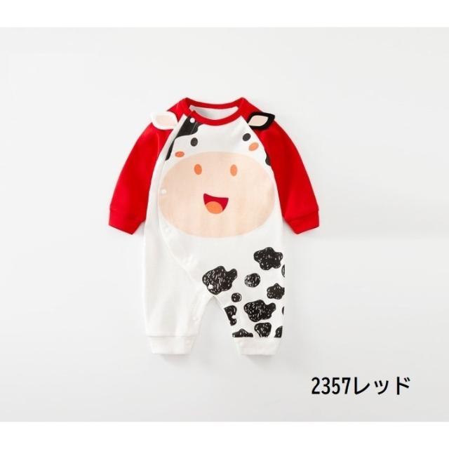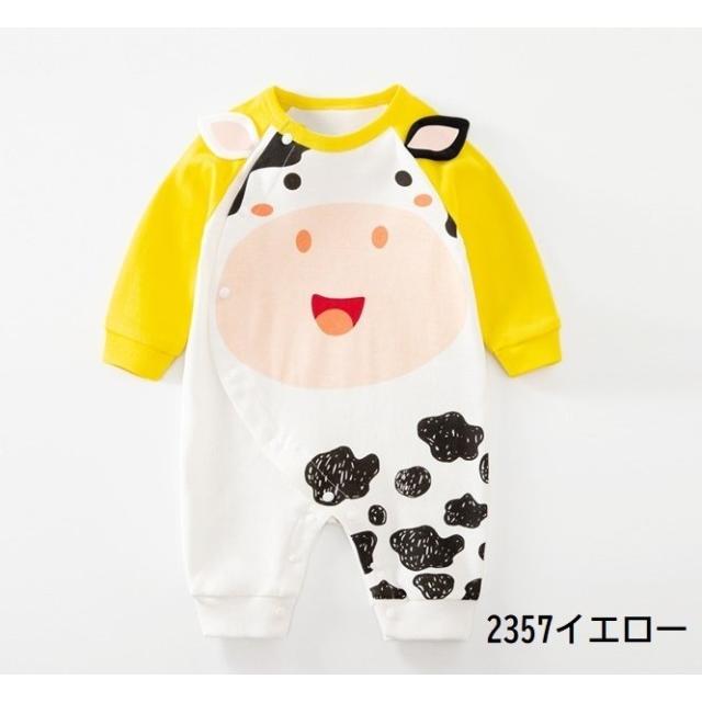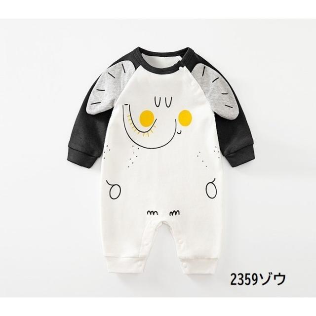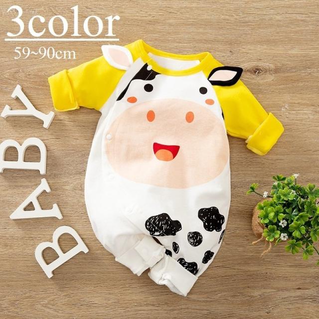 ロンパース カバーオール ボディスーツ 長袖 子供 ベビー 赤ちゃん 女の子 男の子 キッズ 洋服 長ズボン 前ボタン 横ボタン 牛 ウシ 象 ゾウ