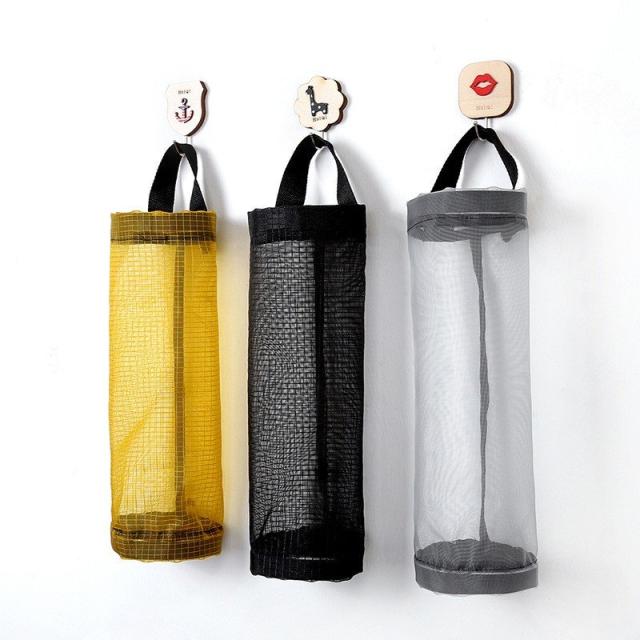 収納袋 メッシュ 吊り下げ 壁掛け 持ち手 アイデア おしゃれ キッチン ゴミ袋 レジ袋 バスルーム リビング
