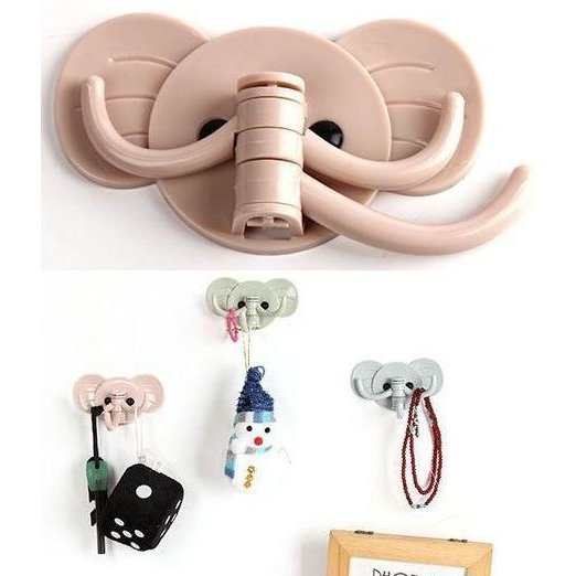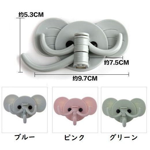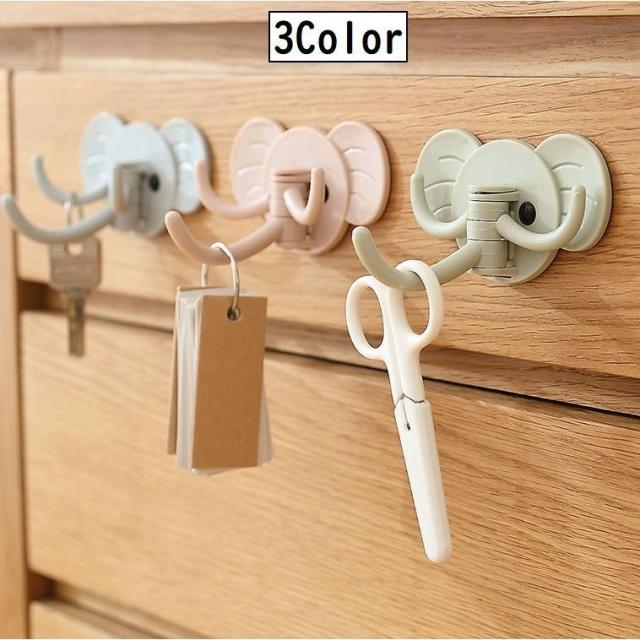 フック ウォールフック 壁掛けフック 粘着タイプ 貼り付けタイプ 3フック 像 ゾウ ゾウさんモチーフ 180度動く 角度自由 耐重2kg 鍵掛け 帽