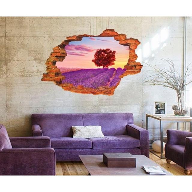 ウォールステッカー 壁紙 壁紙 ルームデコレーション 壁装飾 トリックアート 3D 立体的 だまし絵 窓 景色 異国 お花畑 夕日 雲 空 大木