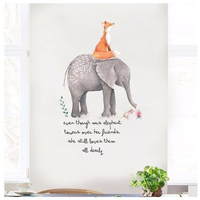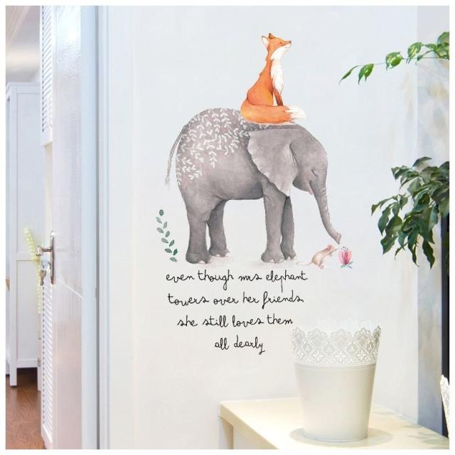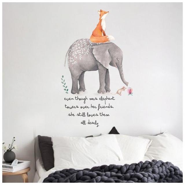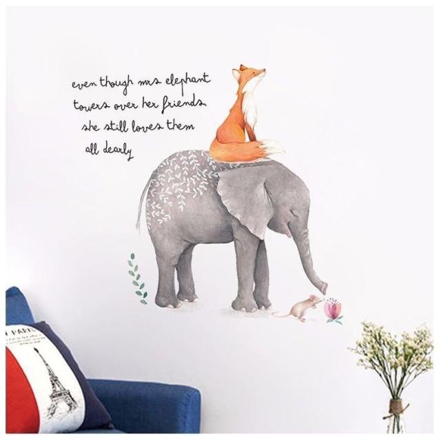 ウォールステッカー 壁紙シール 取り外し可能 面白い 可愛い 子供部屋 ベッドルーム 象 ぞう ゾウ 狐 キツネ 書斎 リビング 模様替え パーティ