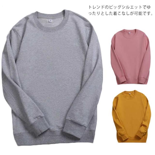 (送料無料)トレーナー カットソー 長袖 レディース メンズ ユニセックス カップル ロング トップス コットン 薄手 綿100% 透けない クルーネック 丸ネック 無地 かわいい ゆったり 大きめ シンプル 大人 学生 春 秋 冬 白 黒 ネイビー 大きいサイズ 3L 4L 5L