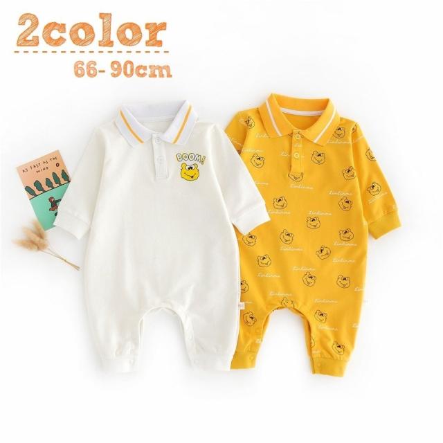 ロンパース カバーオール 長袖 ベビー 赤ちゃん 子供服 キッズ 男の子 女の子 男女兼用 つなぎ レギュラーカラー 襟付き 股下ボタン 長ズボン プ