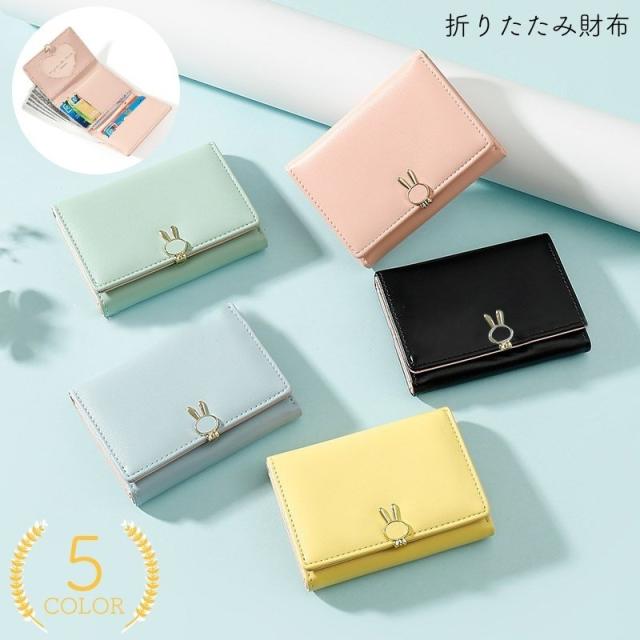 折りたたみ財布 お財布 おサイフ レディース 女性 ファッション雑貨 小物 三つ折り 長方形 コンパクト パスケース付き スナップボタン フェイクレザ
