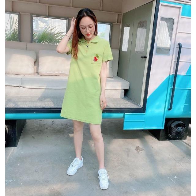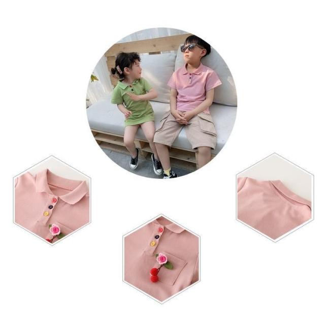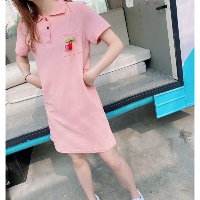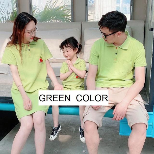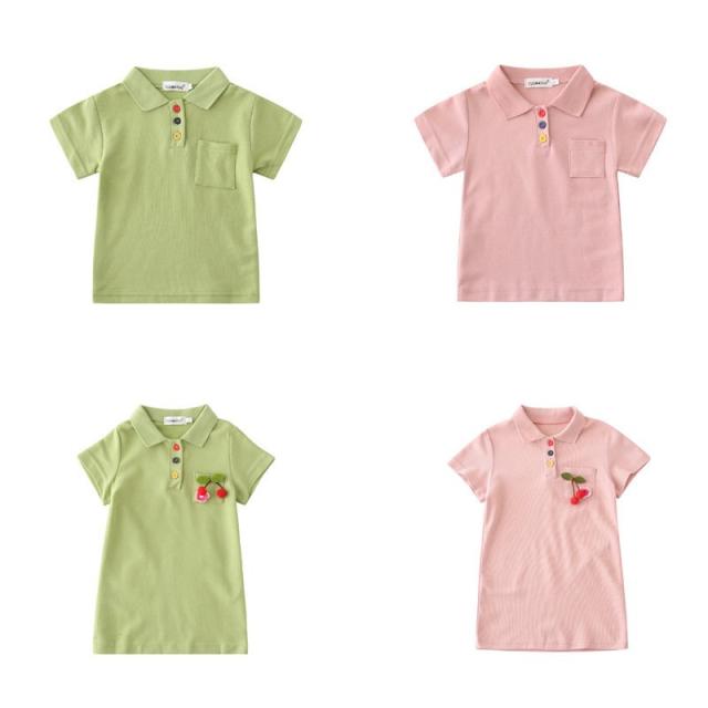 ワンピース ポロシャツ トップス ペア お揃い カップル 親子 半袖 無地 さくらんぼ 花 フラワー レディース メンズ カジュアル かわいい かっこ