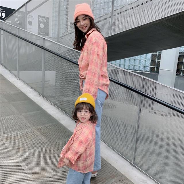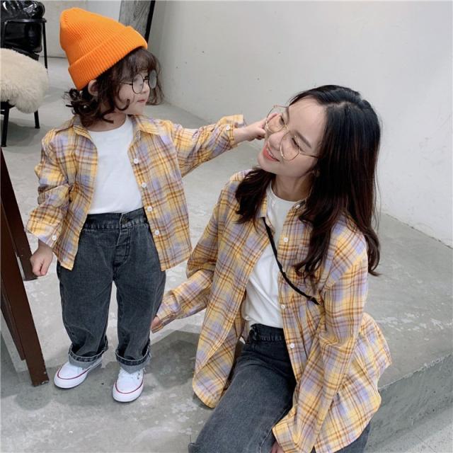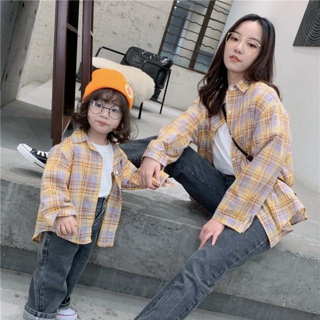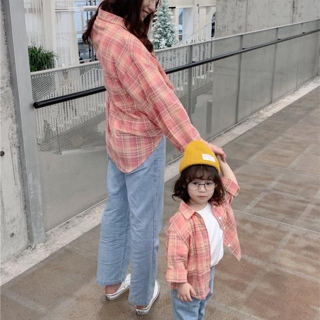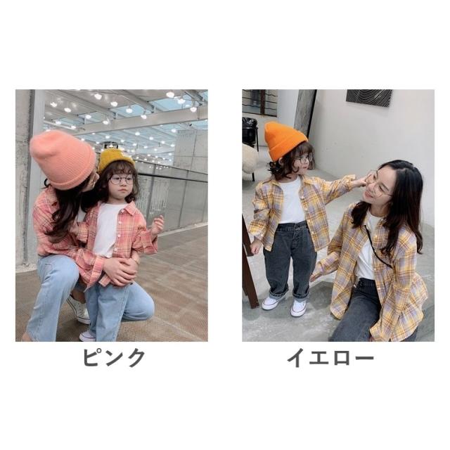 シャツ 長袖 トップス キッズ 子供服 ユニセックス 女の子 男の子 お揃い 親子 リンクコーデ チェック柄 かわいい おしゃれ カジュアル 80 9