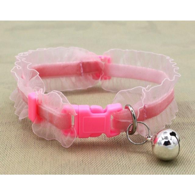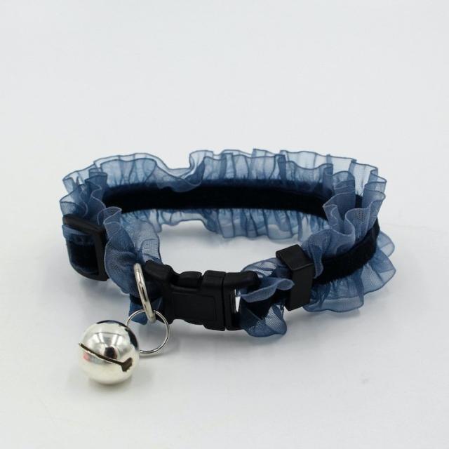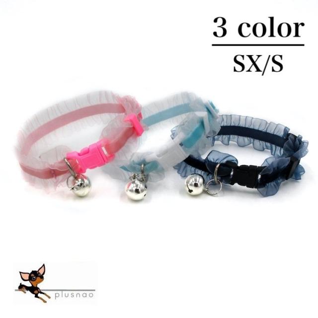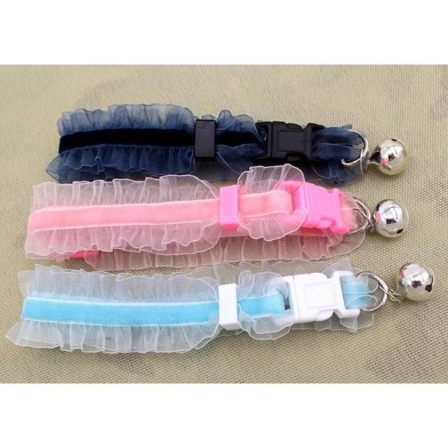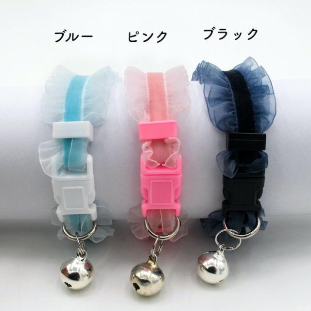 猫用首輪 チョーカー 首飾り 鈴 チュール フリル アクセサリー 伸縮 おしゃれ おめかし ねこグッズ ペット用品 ブラック ブルー ピンク
