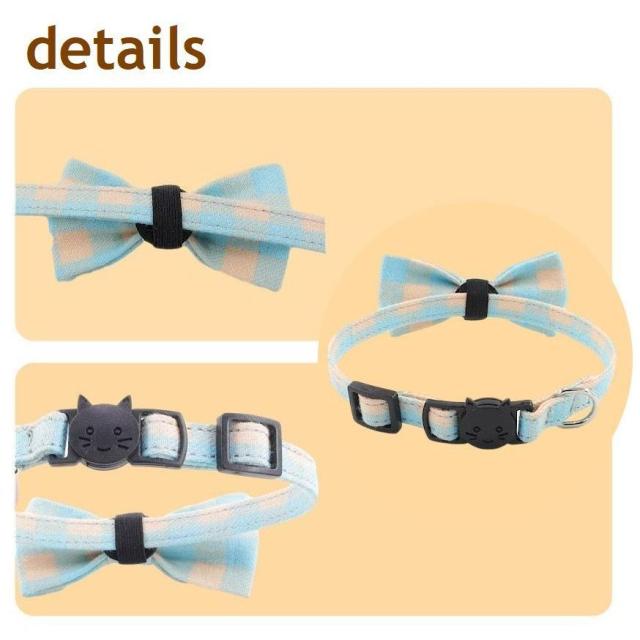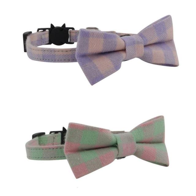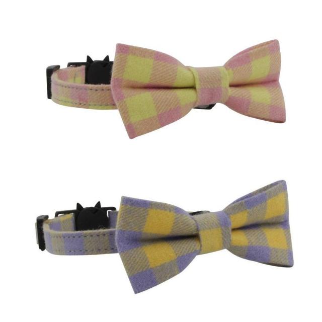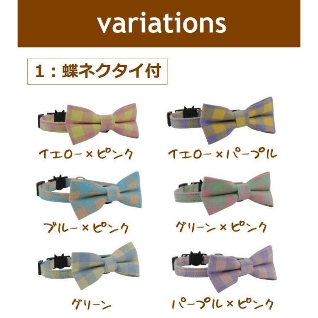 猫用首輪 チェック柄 カラー チョーカー セーフティバックル 蝶ネクタイ リボン パステルカラー 調節可 猫用品 ねこ CAT おしゃれ おめかし シ