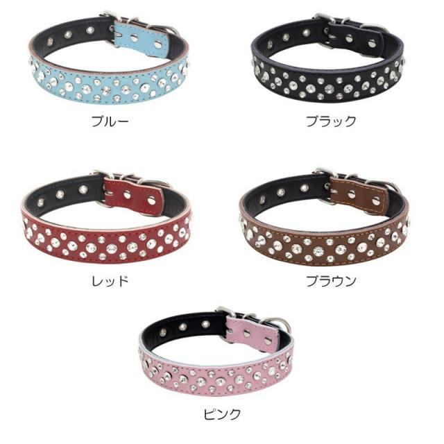 首輪 ラインストーン スタッズ風 リード 単品 犬用 小型犬 中型犬 大型犬 猫用 ペット用品 ペットグッズ 無地 カラフル 黒 赤 茶 白 ベルト