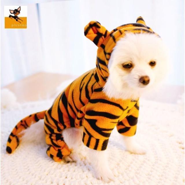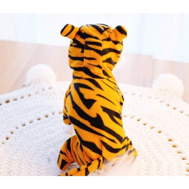 ペット用 犬用 洋服 つなぎ コスチューム トラ 虎 なりきり コスプレ ハロウィン フード付き 半袖 耳付きフード シッポ イベント スナップボタン