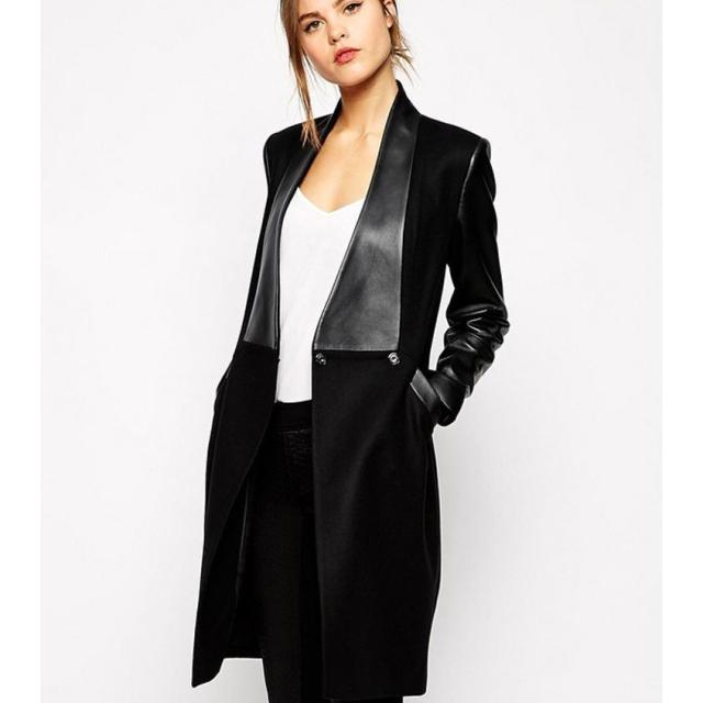 チェスターコート ハーフコート ロングジャケット フェイクレザー 異素材切り替え スリムシルエット 細身 レディース アウター シンプル 無地
