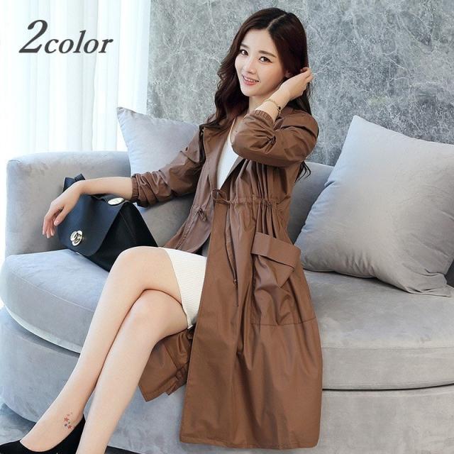 トレンチコート スプリングコート コート アウター レディース 薄手 ロング丈 シンプル カジュアル おしゃれ かわいい 春秋