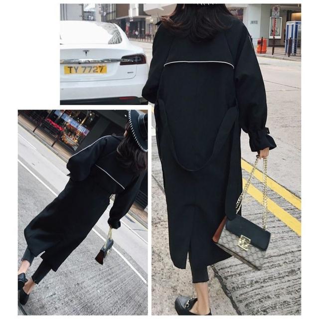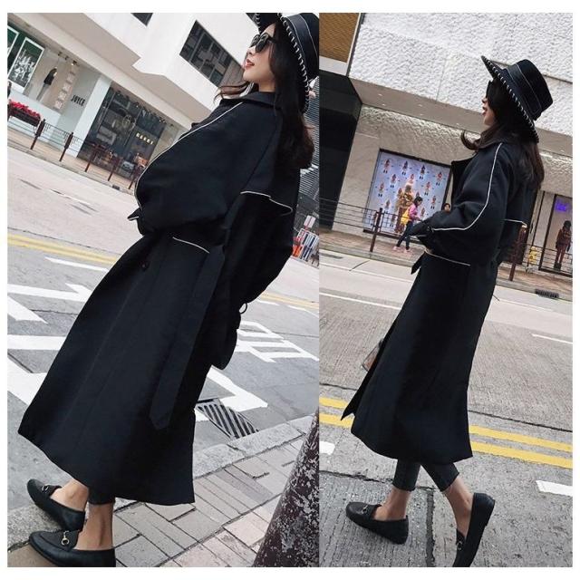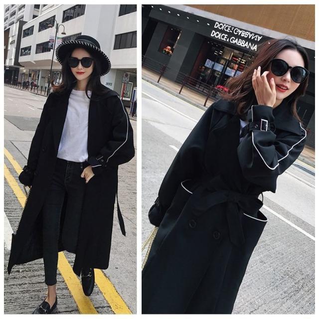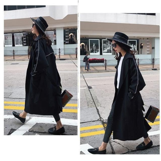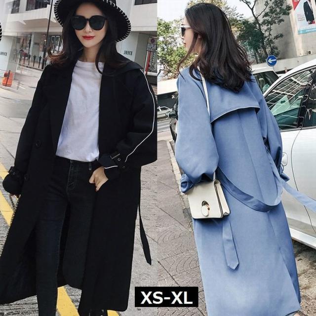 トレンチコート ロングトレンチ レディース アウター ライン入り ロングトレンチコート トレンチ コート 羽織 ロング丈 ライトアウター ブラック ブ