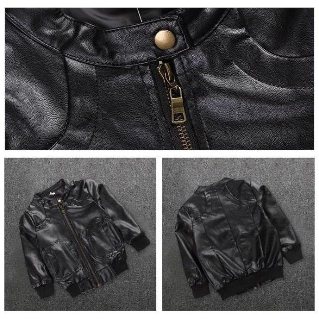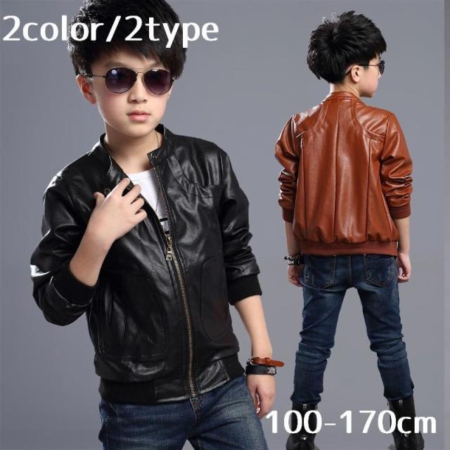 ジャンパー ブルゾン アウター キッズ ジップアップ ライダースジャケット フェイクレザー ジュニア 100-170cm ブラック ブラウン 防寒 お