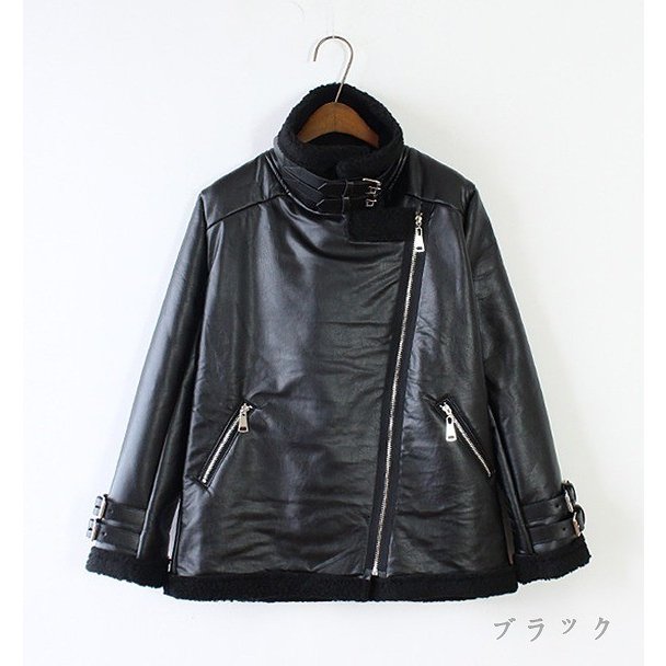 ライダースジャケット ムートン風ジャケット 革ジャン 長袖 レザー調 裏ボア付き ジャンパー ブルゾン ジップアップ ショート丈 カジュアルスタイル