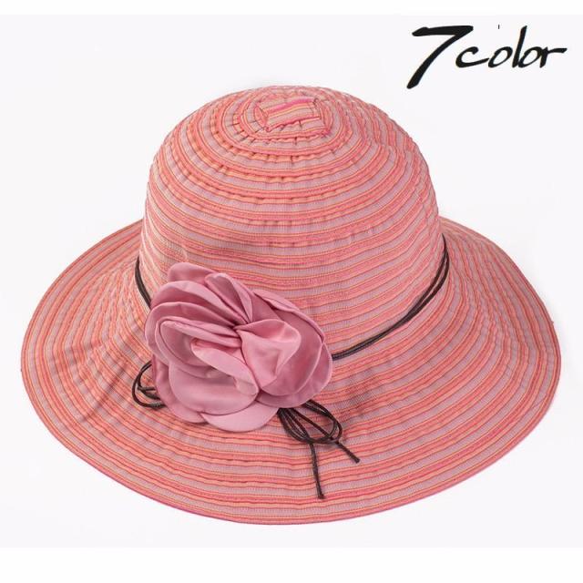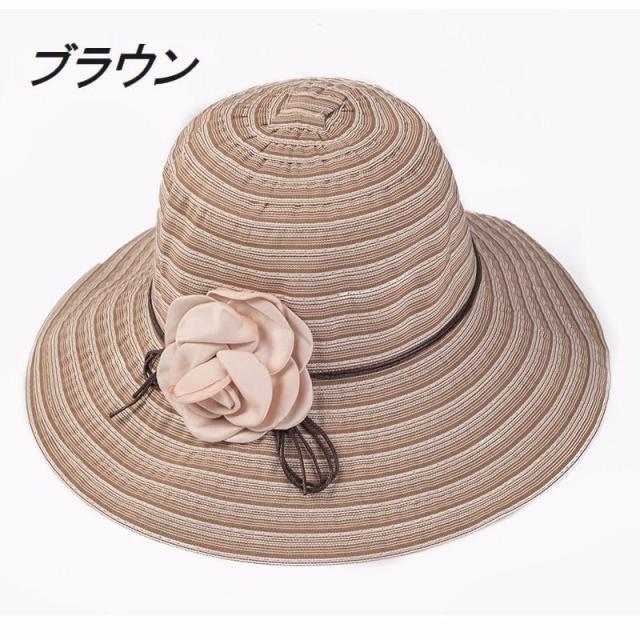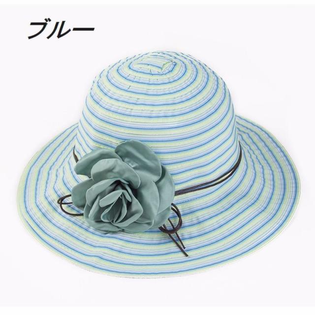 ハット レディース 帽子 女性 バラ フラワー 花 ツバ付き おしゃれ かわいい コサージュ付き 日よけ UV対策 カラフル ファッション小物 婦人
