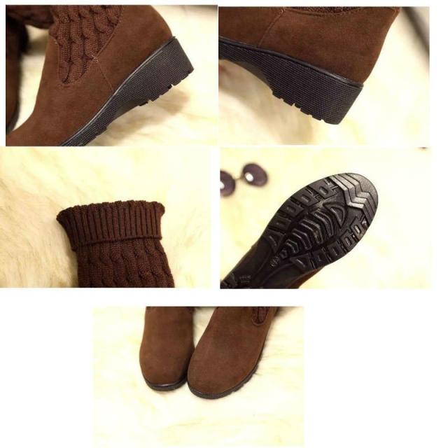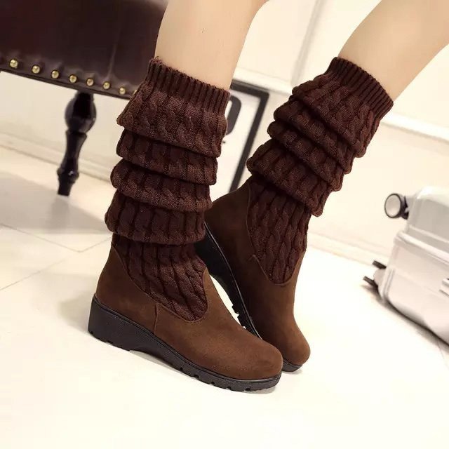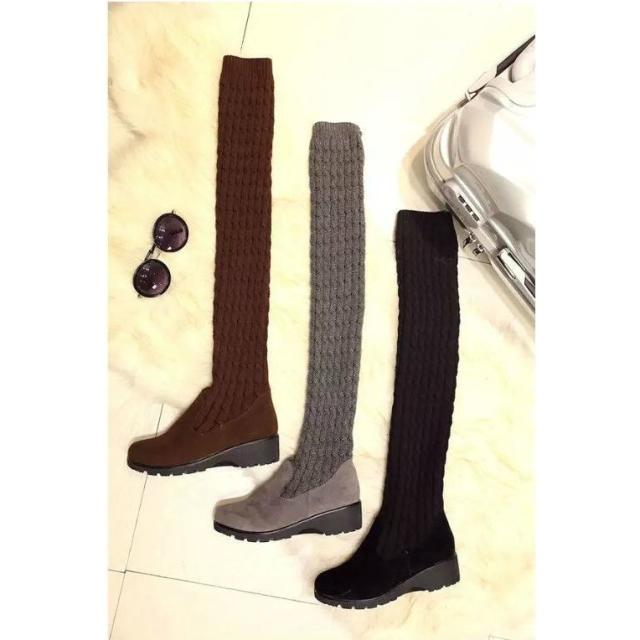 ロングブーツ ニーハイ ニット 靴 レディース ルーズソックス 2WAY ソックス風 厚底 黒 ブーツ ケーブル編み おしゃれ 可愛い 女子力アップ