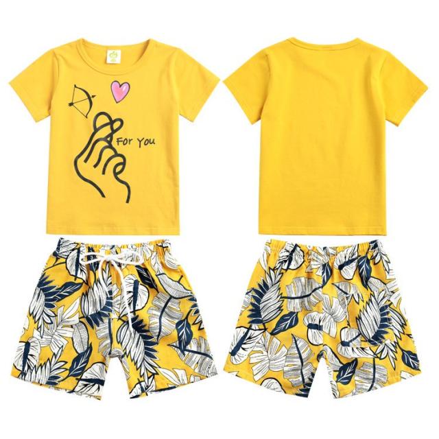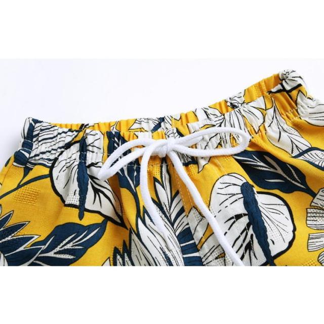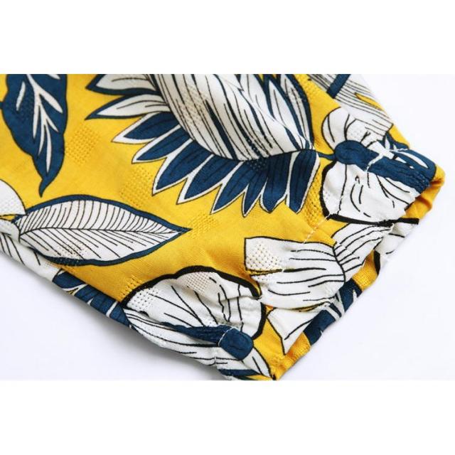 親子ペアルック セットアップ Tシャツ ショートパンツ クロップドパンツ キッズ ジュニア ベビー 半袖 丸襟 七分丈 ハワイアン柄 お揃い 部屋着