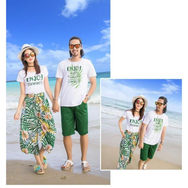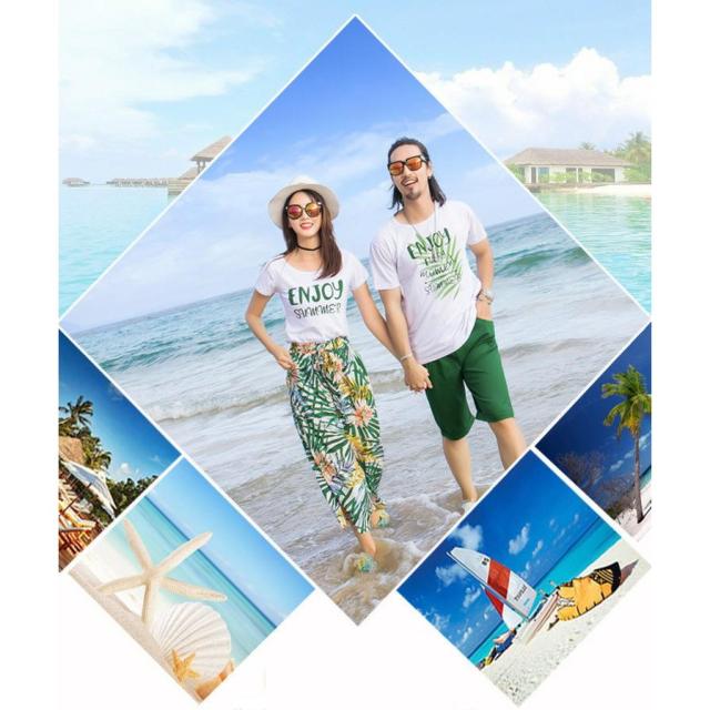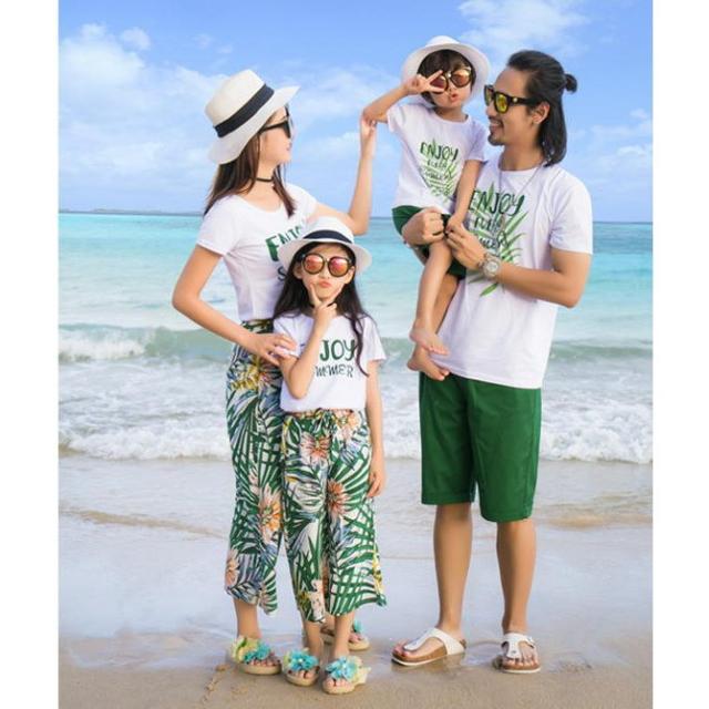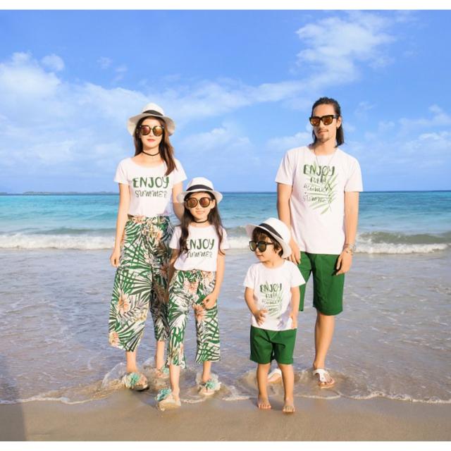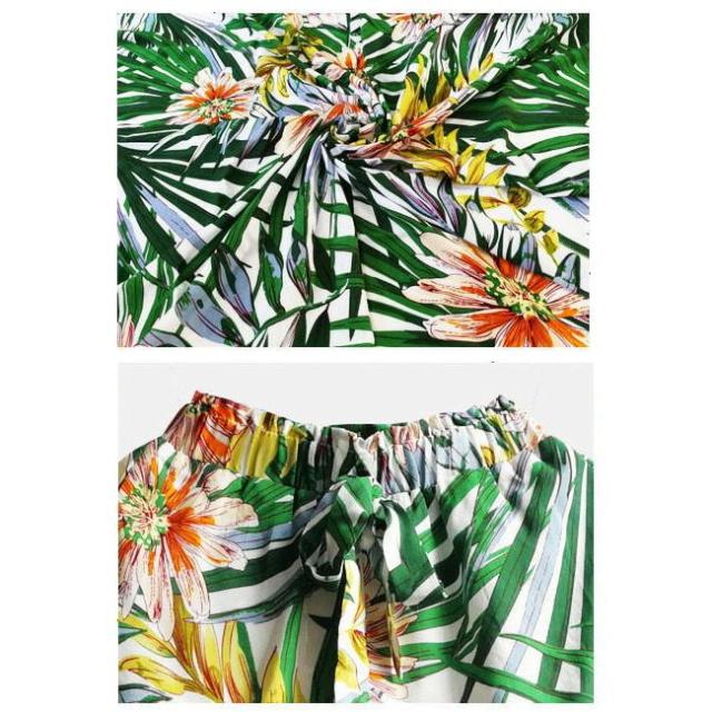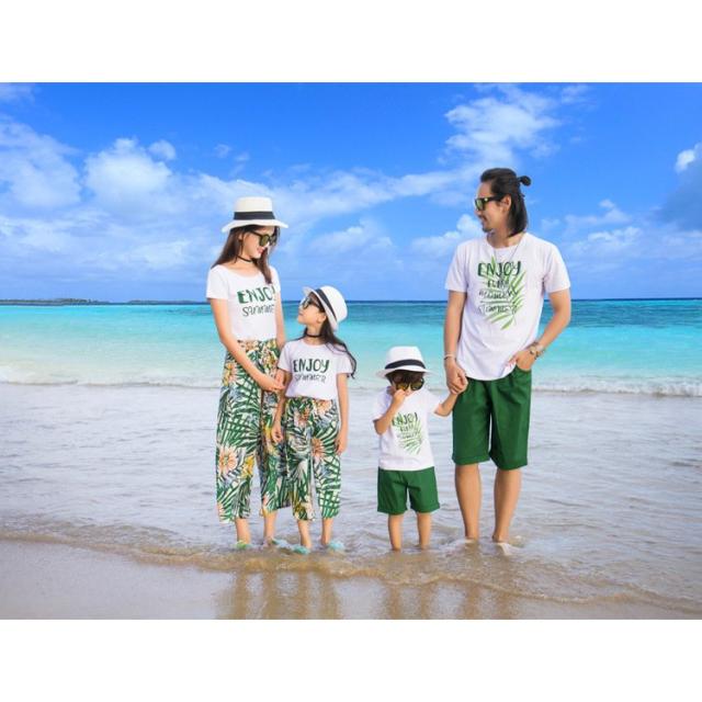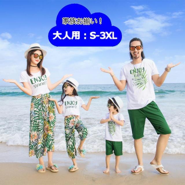 親子ペアルック セットアップ Tシャツ ワイドパンツ ショートパンツ レディース メンズ 半袖 丸襟 七分丈 トロピカル お揃い 部屋着 リゾート 夏