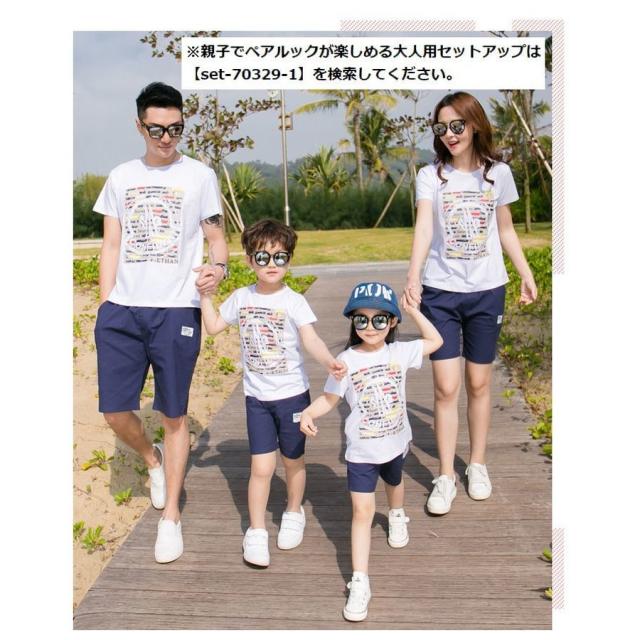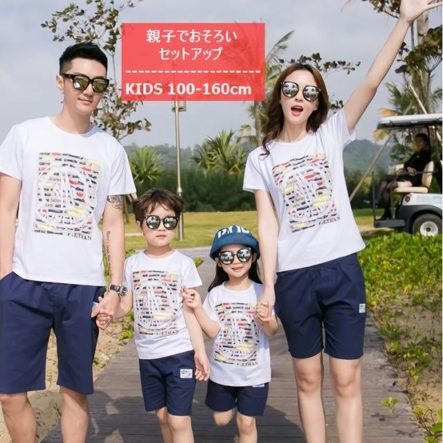 親子ペアルック セットアップ 上下セット Tシャツ ハーフパンツ 半袖 キッズ ジュニア 男の子 女の子 お揃い ニワトリ プリント柄 半ズボン 夏服