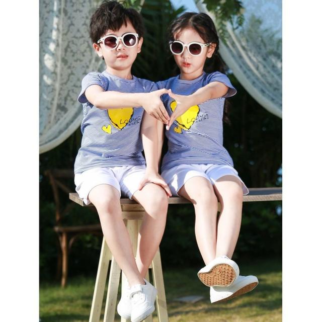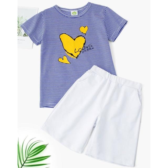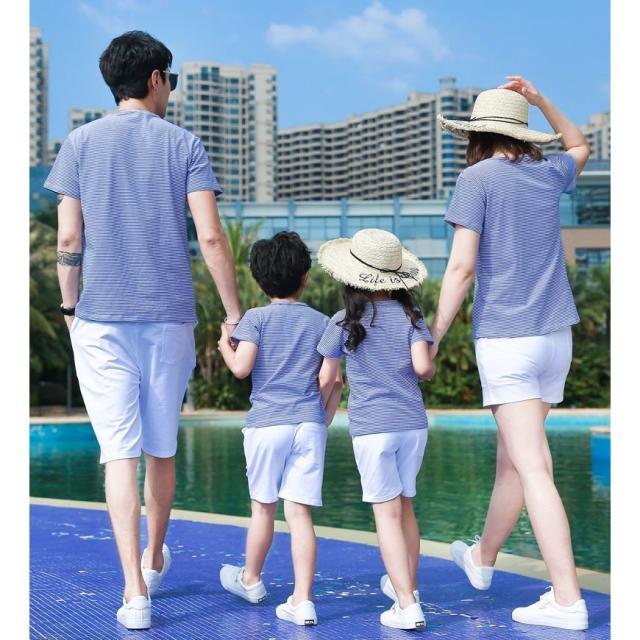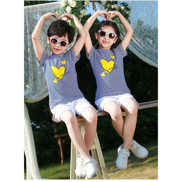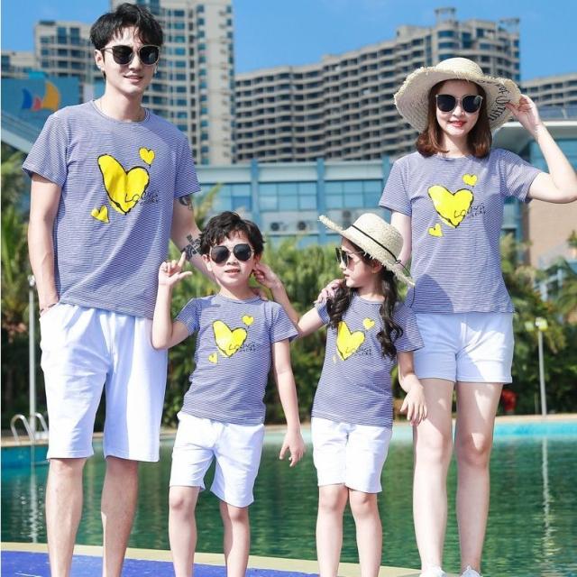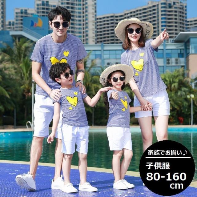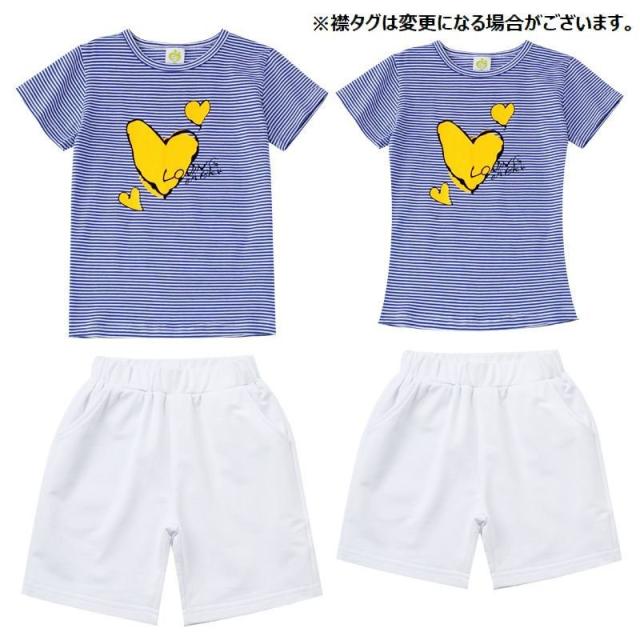 親子ペア セットアップ 上下セット 半袖Tシャツ ショートパンツ 子供服 キッズ ベビー ジュニア お揃い ボーダー柄 ハートプリント ファミリーコー
