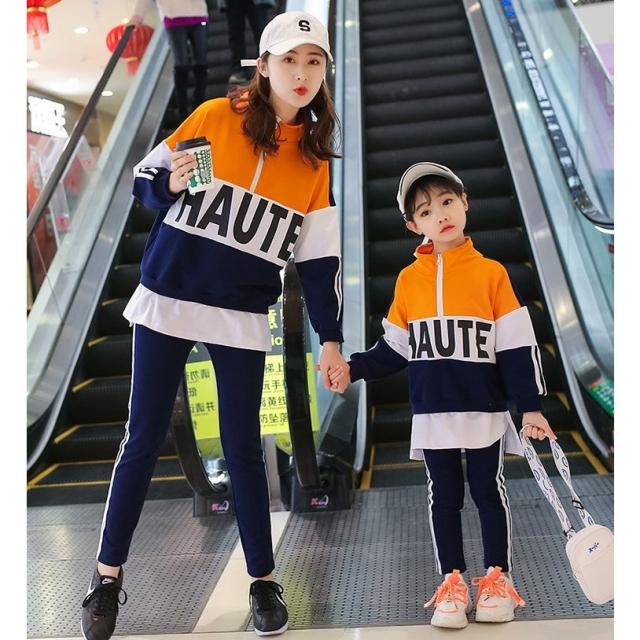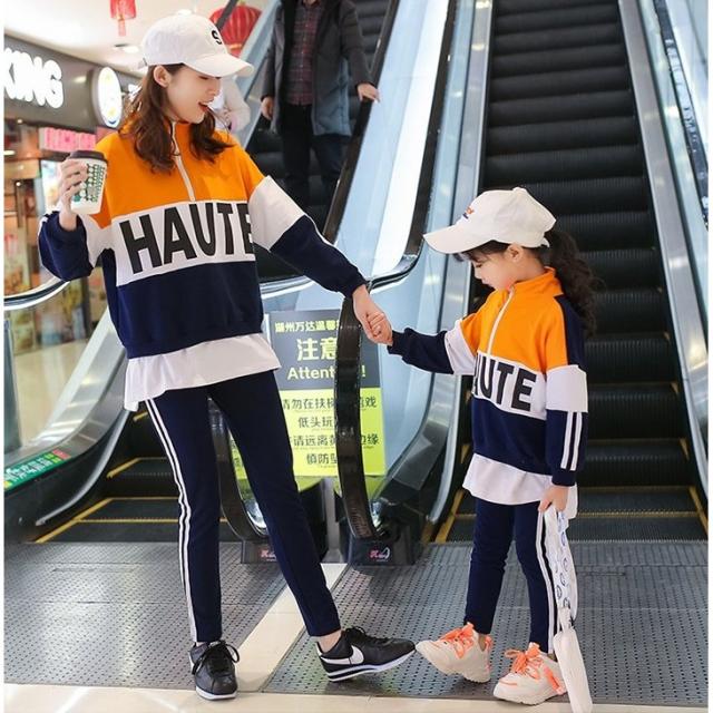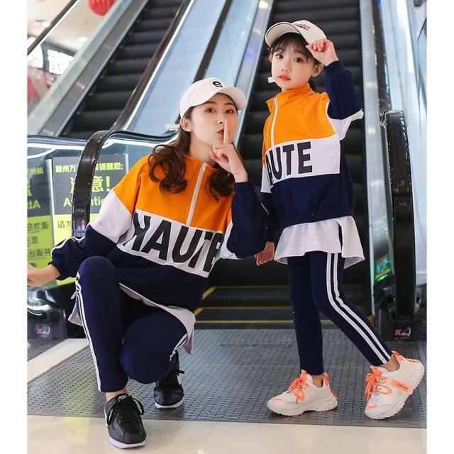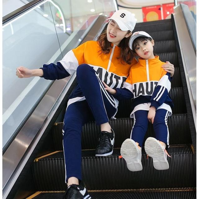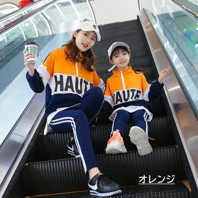 親子ペアルック セットアップ 子供 女性 キッズ ジュニア レディース 男の子 女の子 上下セット 2点セット ジャージ 襟ファスナー トール カラー
