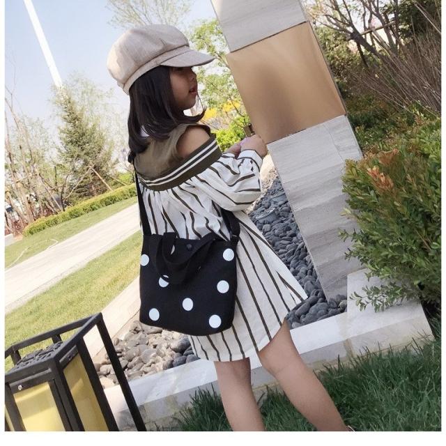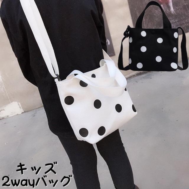 ショルダーバッグ 2WAYバッグ ハンドバッグ 手提げ鞄 斜め掛け カバン ドット柄 水玉模様 子供用 キッズ バイカラー ツートンカラー カジュアル