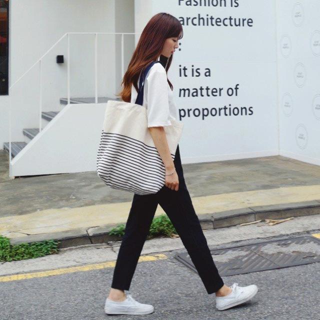 キャンバストートバッグ キャンバス エコバッグ レディース メンズ ボーダー 肩掛け サブバッグ セカンドバッグ トートバッグ 白 大容量 A4 大き