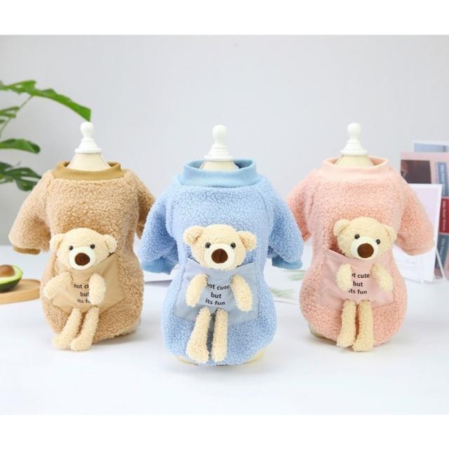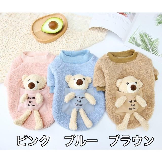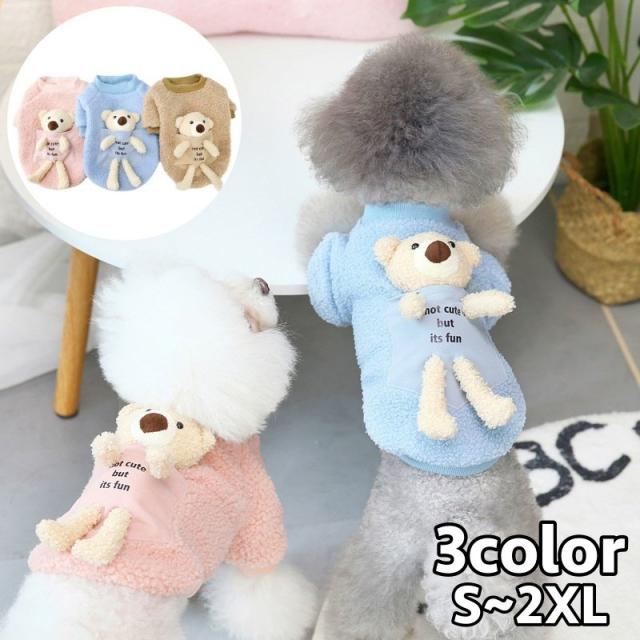 ペットウェア トレーナー ボア 犬用 猫用 洋服 袖あり プルオーバー くま ぬいぐるみ ドッグウェア キャットウェア 冬 あったか 暖かい もこもこ