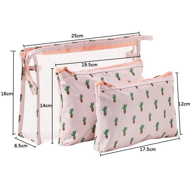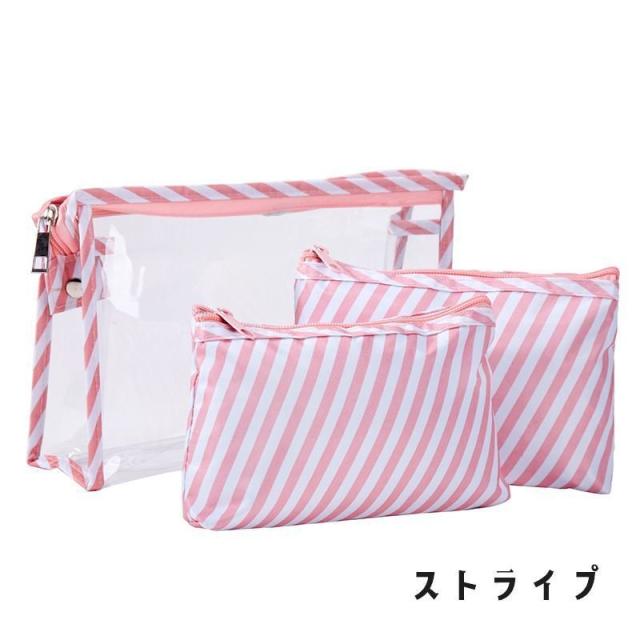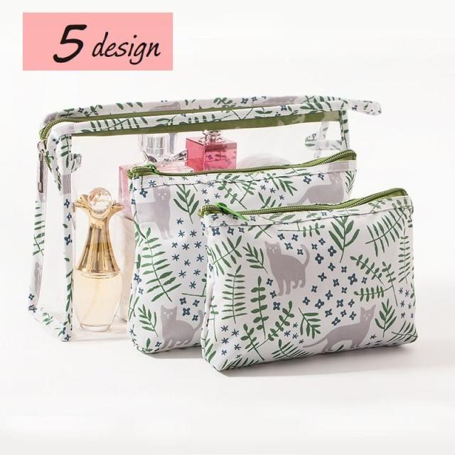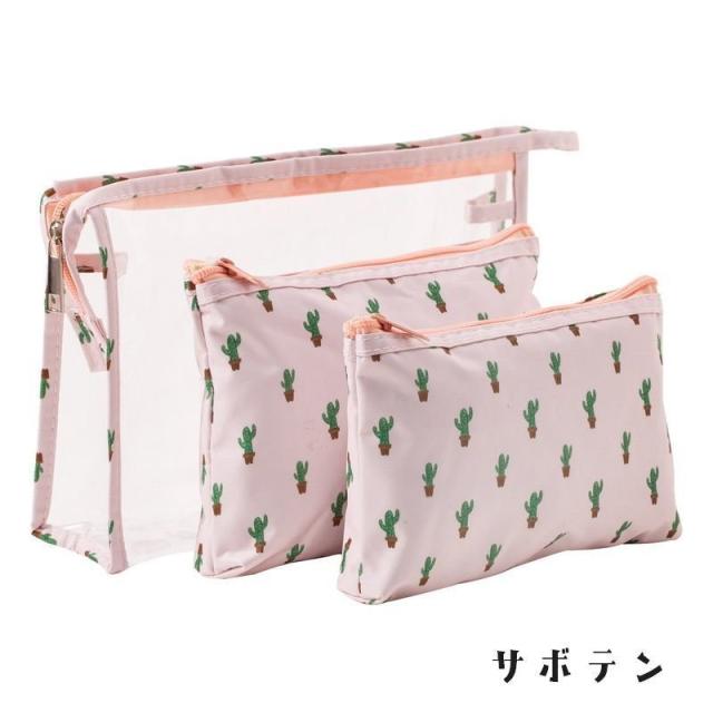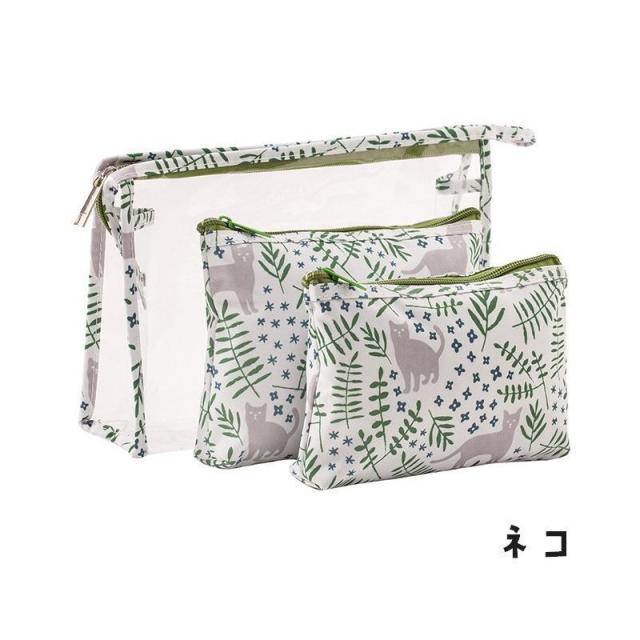 化粧ポーチ メイクポーチ 小物入れ レディース 3点セット コスメポーチ クリア 透明 ファスナー かわいい 旅行 ビニールポーチ 花 ネコ フラミン