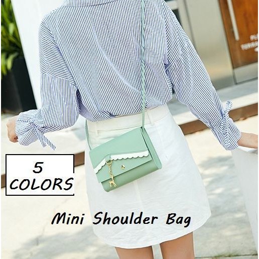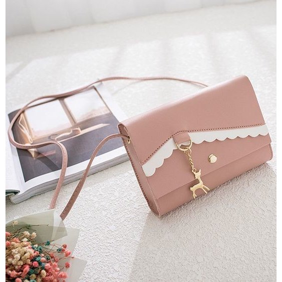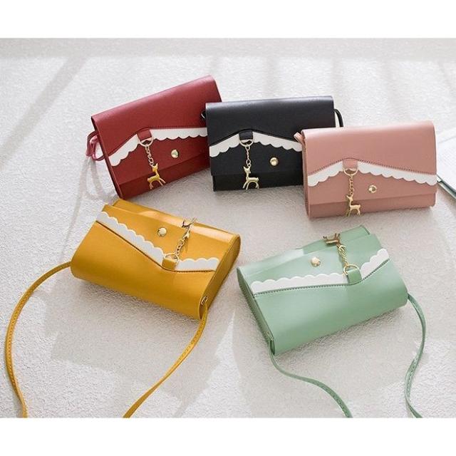 バッグ ショルダーバッグ レディース 斜め掛け ワンショルダー ミニ 小さめ マチあり 鹿のチャーム チャーム付き ショルダーストラップ長さ調整可能