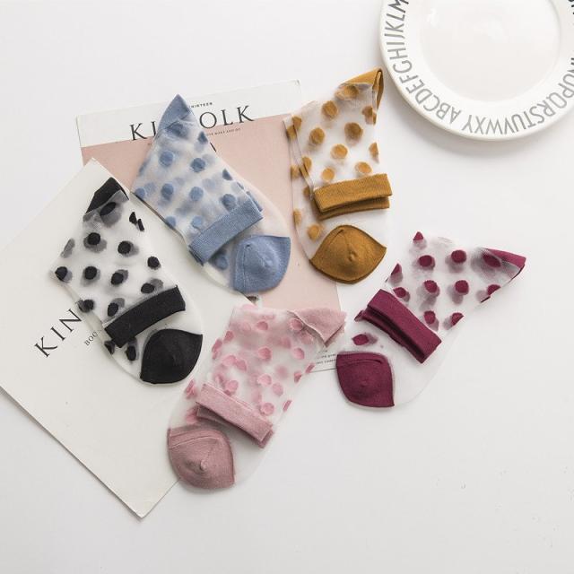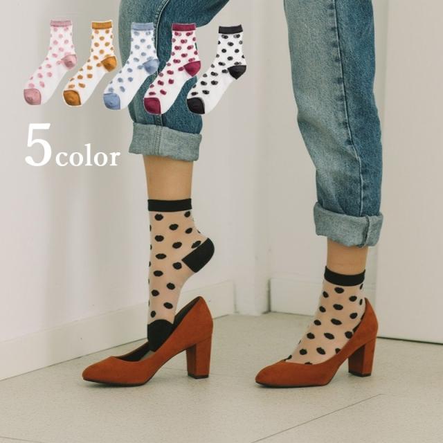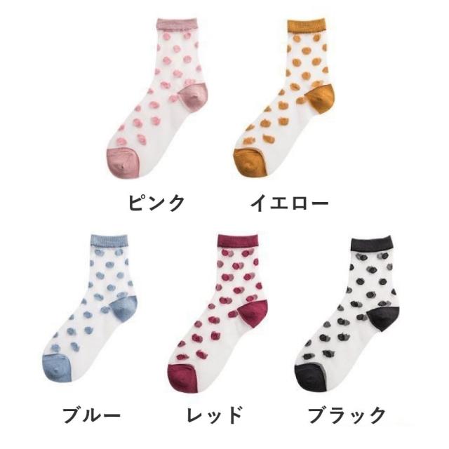 クルーソックス 靴下 ソックス シアー シースルー 透け感 レディース 女性 婦人 ファッション小物 水玉 ドット柄 かわいい おしゃれ