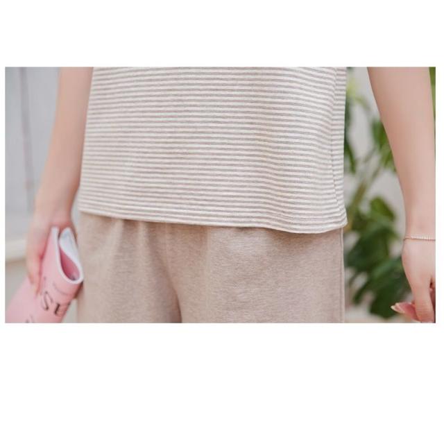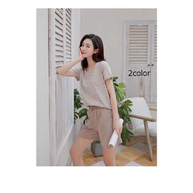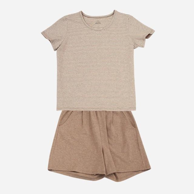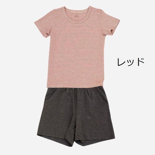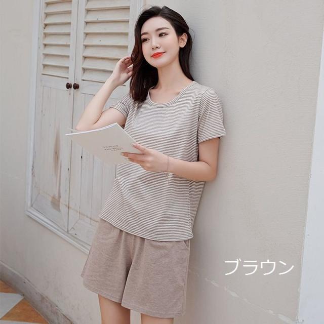 ルームウェア セットアップ 部屋着 パジャマ 半袖 ショートパンツ 丸襟 女性用 レディース ラウンドネック シンプル ナチュラル 夏 ボーダー