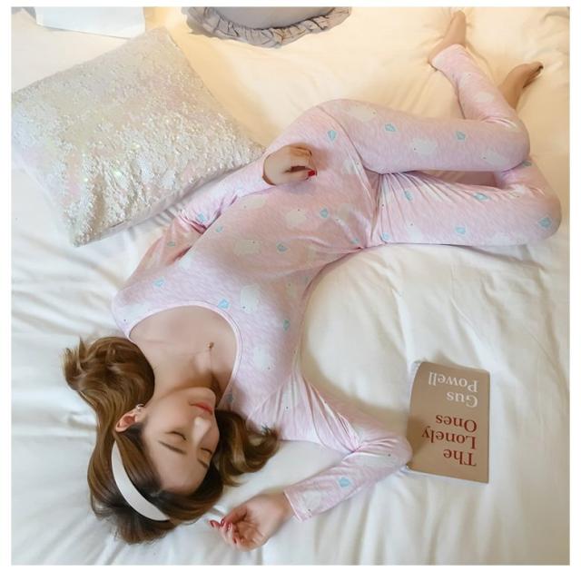 パジャマ 上下セット ルームウェア レディース 女性用 長袖 長ズボン ラウンドネック 裏起毛 リーフ 葉っぱ 可愛い おしゃれ 部屋着 寝巻き 寝間