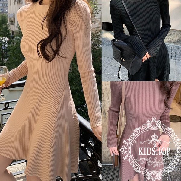 レディース ニットワンピース ドレス メリヤス プリーツ チュール 長袖 ルロング丈 秋冬 ワンピース 無地 韓国風 着痩せ 上品 通勤 新作