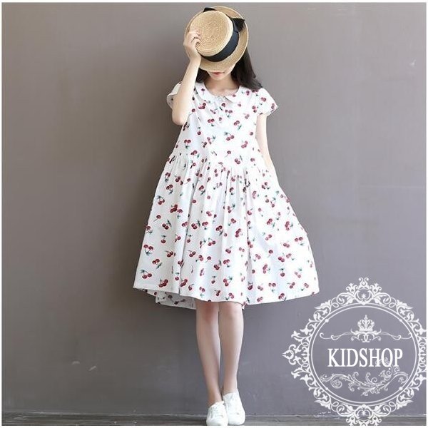 レディース ワンピース さくらんぼ柄 半袖 森ガール Aライン 可愛い 学院風 夏新作
