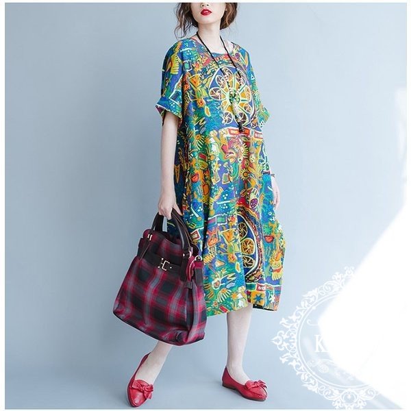 ワンピース 膝丈 レディース 大きいサイズ ワンピース リネン ワンピース リゾート 半袖 森ガール カジュアル 2020春夏新作