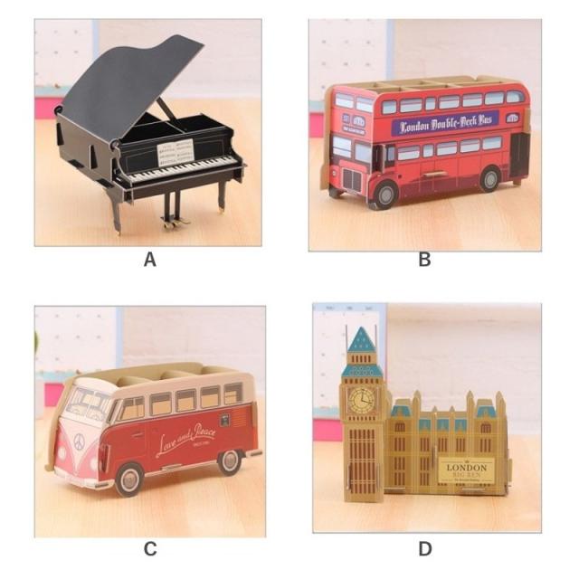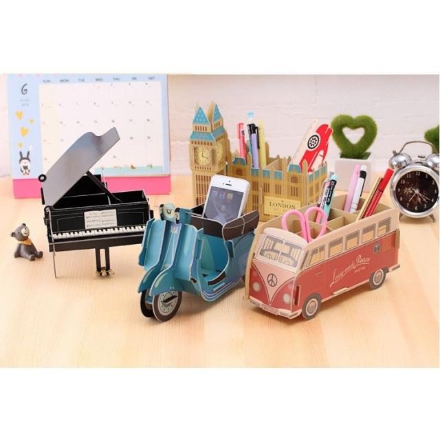 小物入れ ペン立て ペーパークラフト 収納 卓上収納 デスク 整理整頓 文具 バス バイク ピアノ おしゃれ