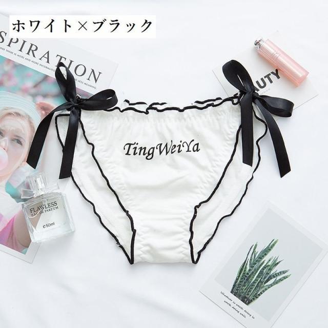 レディースショーツ 単品 サイドリボン ハイレッグ 無地 英字 英語 パンツ パンティー インナー セクシー 可愛い かわいい 女性用下着 女性用 婦