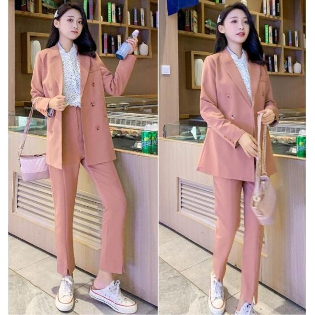 韓国風レディース セットアップ 2点セット 秋冬 30代40代 フォーマル 卒業式 入学式 セレモニースーツ 長袖スーツ+長パン